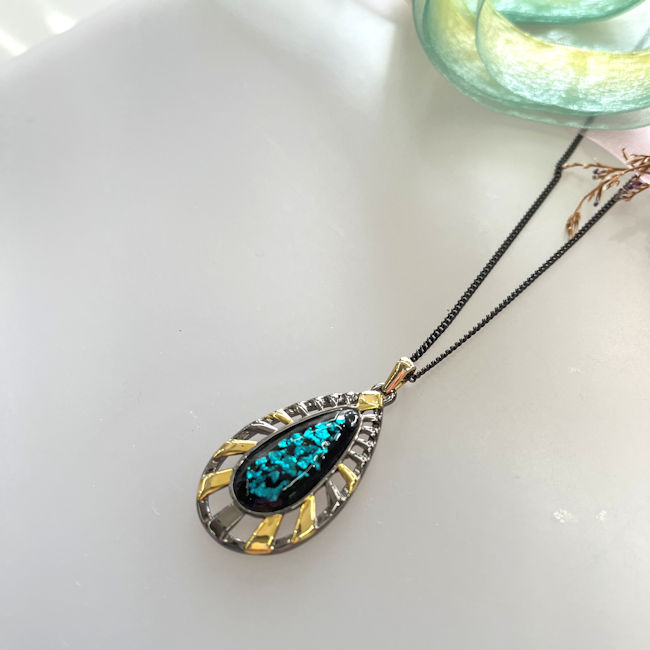 七宝焼アクセサリー 1点もの! デラ枠ネックレス・しずく