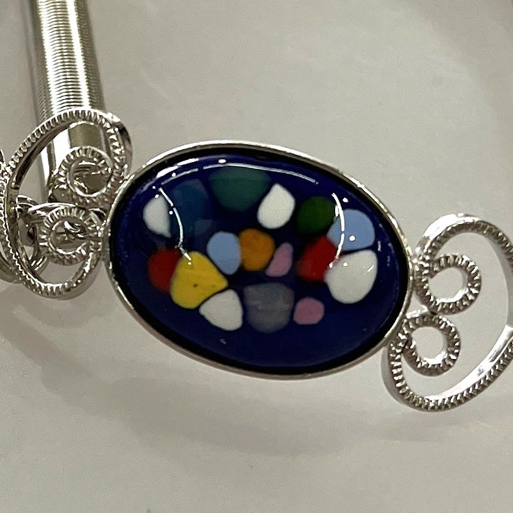 七宝焼アクセサリー アームバンド 楕円 フリット青