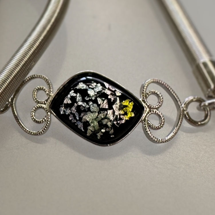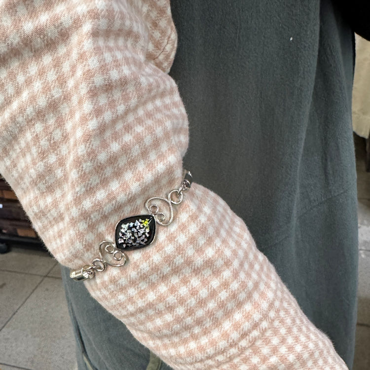 七宝焼アクセサリー アームバンド 変形ひし形 カット銀箔
